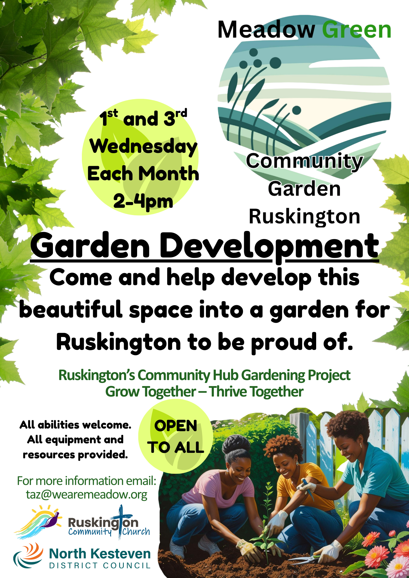 The project is being developed and maintained by volunteers supported by Meadow Community Hub and Ruskington Community Church and working in partnership with Fairfield Community Farm.